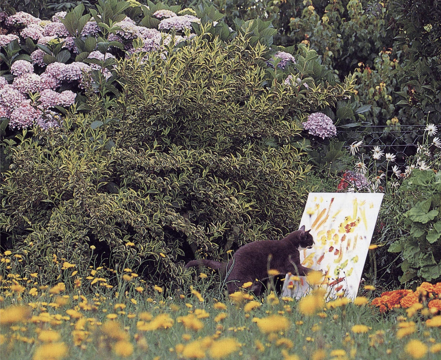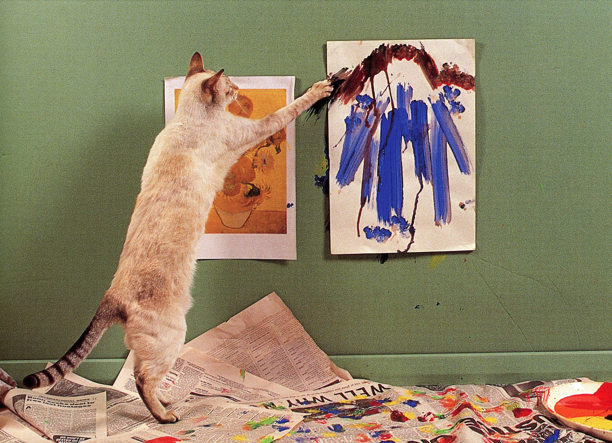 ❉ Why Cats Paint by Heather Busch and Burton Silver (1994) — A satirical art history tome analyzing the “theory of feline aesthetics,” from a 5000-year-old Egyptian scroll to contemporary scratching of “appropriated” upholstery.