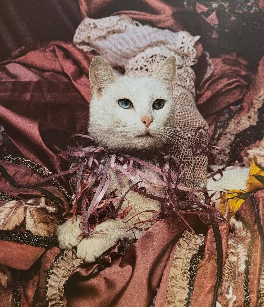 ❉ Vavra’s Cats (1986) — Robert Vavra may have been known as the world’s foremost equine photographer (he made my personal favorite vintage coffee table book, Unicorns I Have Known), but here he turns to cats—who he dresses up in swathes of lace, drips of diamonds, tiaras, ribbons, and Cleopatra eyeliner. An Atlantic review from the year it came out aptly calls the book a “feline fairyland.” The scans below are from Press Books; their copy sold, but here’s a signed one on eBay.