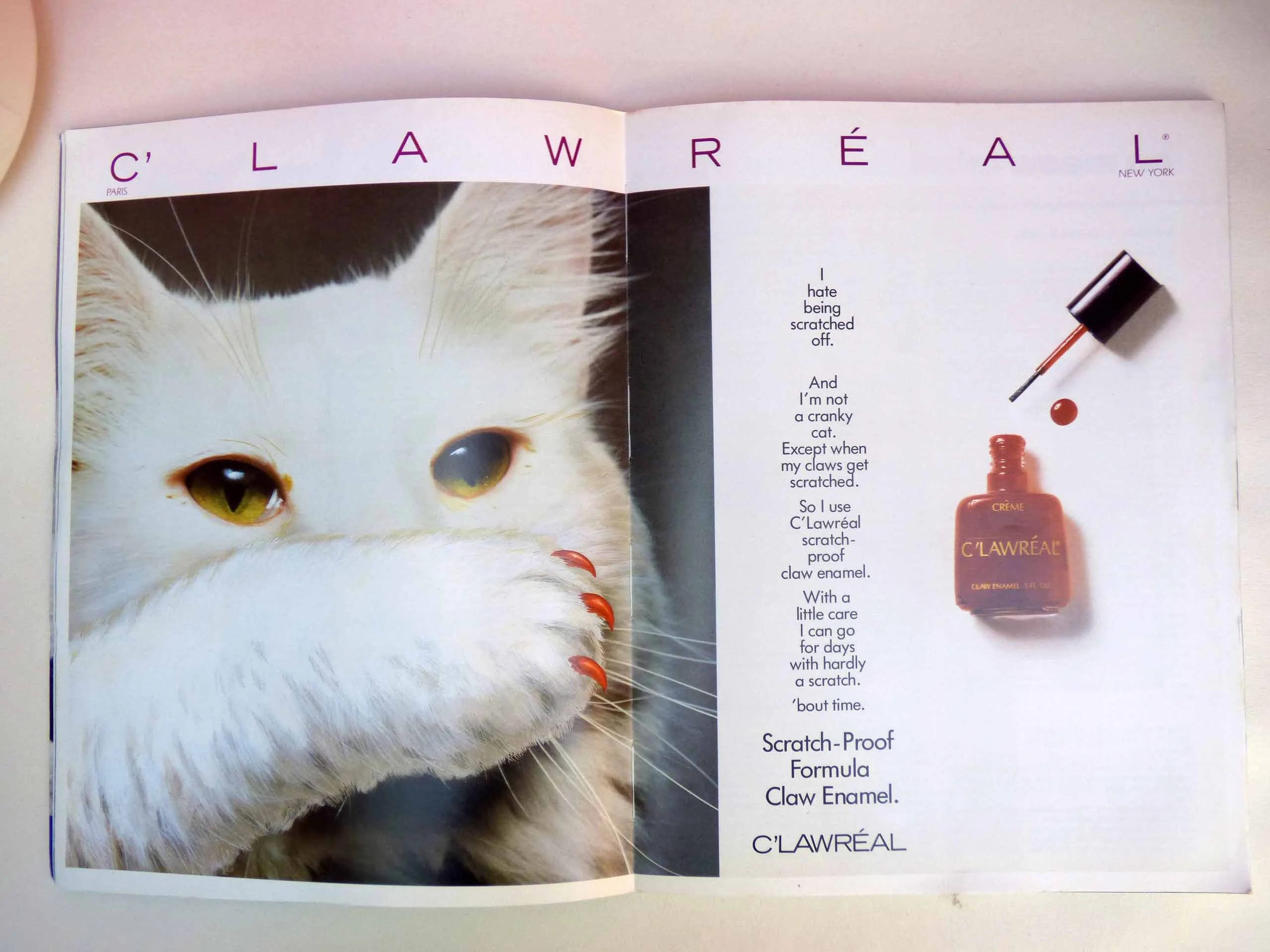 ❉ Catmopolitan by Ilene Hochberg (1987) — Catmopolitan was a magazine for fashionable felines from the genius behind Dogue (1986), Vanity Fur (1988), and Good Mousekeeping (1996). Those spoofs were a big inspiration for “Tabbyloid”—a trashy tabloid-inspired insert we did in Catnip: Volume 2 with splashy stories like “CAT SURVIVES CURIOSITY” and “‘REAL HOUSECATS’ SPILL THE MILK!”
